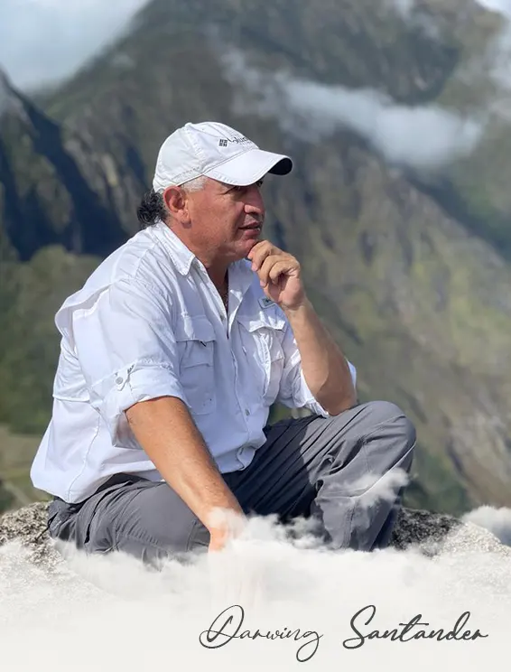 Nombre: Darwing Santander Linares, nací el 03 de octubre de 1968; fecha histórica en el país, se dio el golpe de estado del general Juan Velasco Alvarado, tomando el poder de golpe militar; hijo de Juan y Wilma, el lugar donde nací fue en la casa de mis abuelos a la usanza tradicional, calle Alejandro Velasco Astete #35 del distrito de San Jerónimo-Cusco; estudié en el jardín municipal, fui inscrito como primer alumno varón en el colegio de señoritas Nuestra Señora del Rosario de San Jerónimo; fuimos 05 niños que iniciamos que el colegio se vuelva mixto e hice toda la primaria y secundaria.